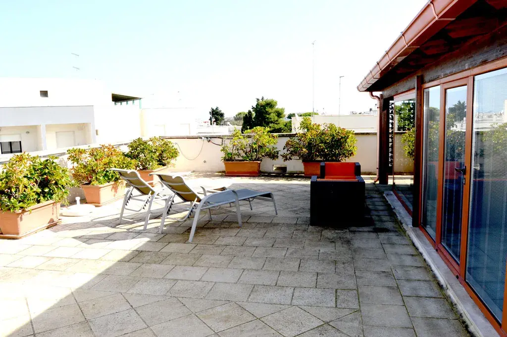 L' attico di Uggiano è un appartamento esclusivo per vacanze a Otranto, a pochi passi dal centro e dalla spiaggia. La casa vacanze situata al primo piano offre fino a 4 posti letto. È dotata di aria condizionata, internet wi-fi, lavatrice, lavastoviglie, forno elettrico phon, tv, asse e ferro da stiro. Il balcone panoramico con ringhiera in vetro consente di godere di eccezionale vista sul mare e sul centro storico della città dei Martiri. Gli interni sono formati da una zona giorno raffinata e arredata con cura ed elementi di pregio. Vi sono la sala da pranzo, la grande cucina super accessoriata con isola, una zona relax con comodo divano e un bagno di servizio. La zona notte è formata da 2 camere matrimoniali semplici ed accoglienti. Infine, vi sono due bagni doccia e un vano lavanderia con lavatrice. Il balcone è arredato con salottino per trascorrere il tempo all`aperto. I dintorni di Otranto sono ad appena 400 metri dal centro e dalla spiaggia popolare cittadina ai piedi del centro storico. La costa di Otranto offre tantissime incantevoli calette, lunghe spiagge come quelle degli Alimini, e luoghi dalla natura incontaminata come la Baia dei Turchi. Il centro storico di Otranto è uno scrigno di meraviglie da scoprire, lungo le cui stradine sono numerosi anche i bar, i ristorantini, i negozietti di artigianato e le attività commerciali per lo shopping.